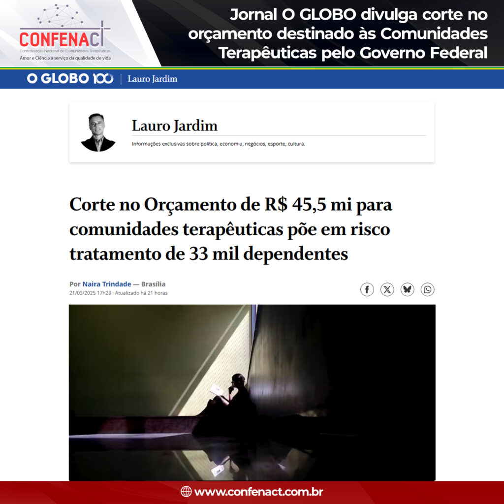 Atualmente, das 585 comunidades terapêuticas habilitadas pelo Ministério do Desenvolvimento Social, 180 foram contratadas por insuficiência orçamentária, deixando 405 instituições sem recursos e milhares de pessoas sem acesso ao tratamento adequado.