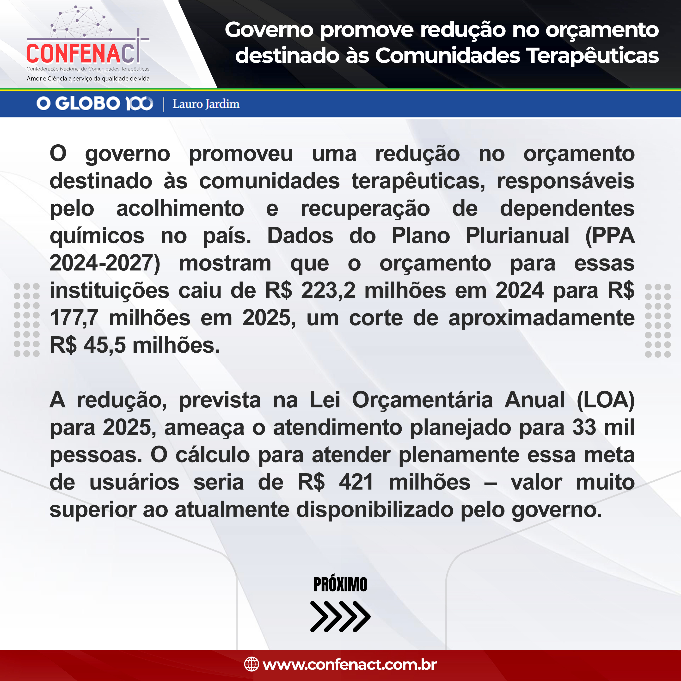 — “Essas comunidades são fundamentais no tratamento e recuperação de pessoas que enfrentam problemas com drogas. O governo Lula corta exatamente onde deveria ampliar investimentos, colocando em risco milhares de vidas e famílias”.